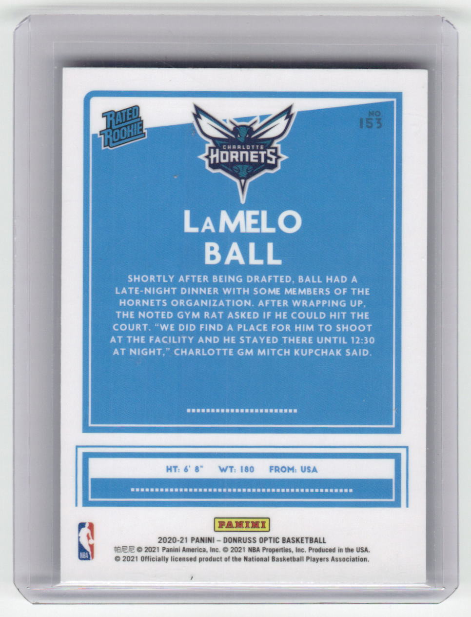 2020-21 LAMELO BALL Rated Rookie Optic Hornets #153