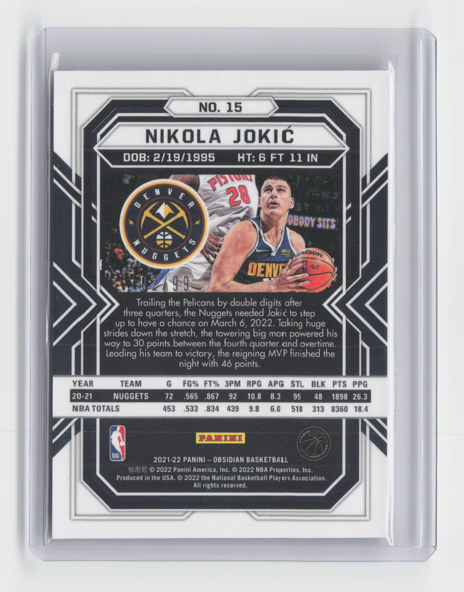 2021-22 NIKOLA JOKIC Red/Yellow/Green 92/99 Obsidian Nuggets #15
