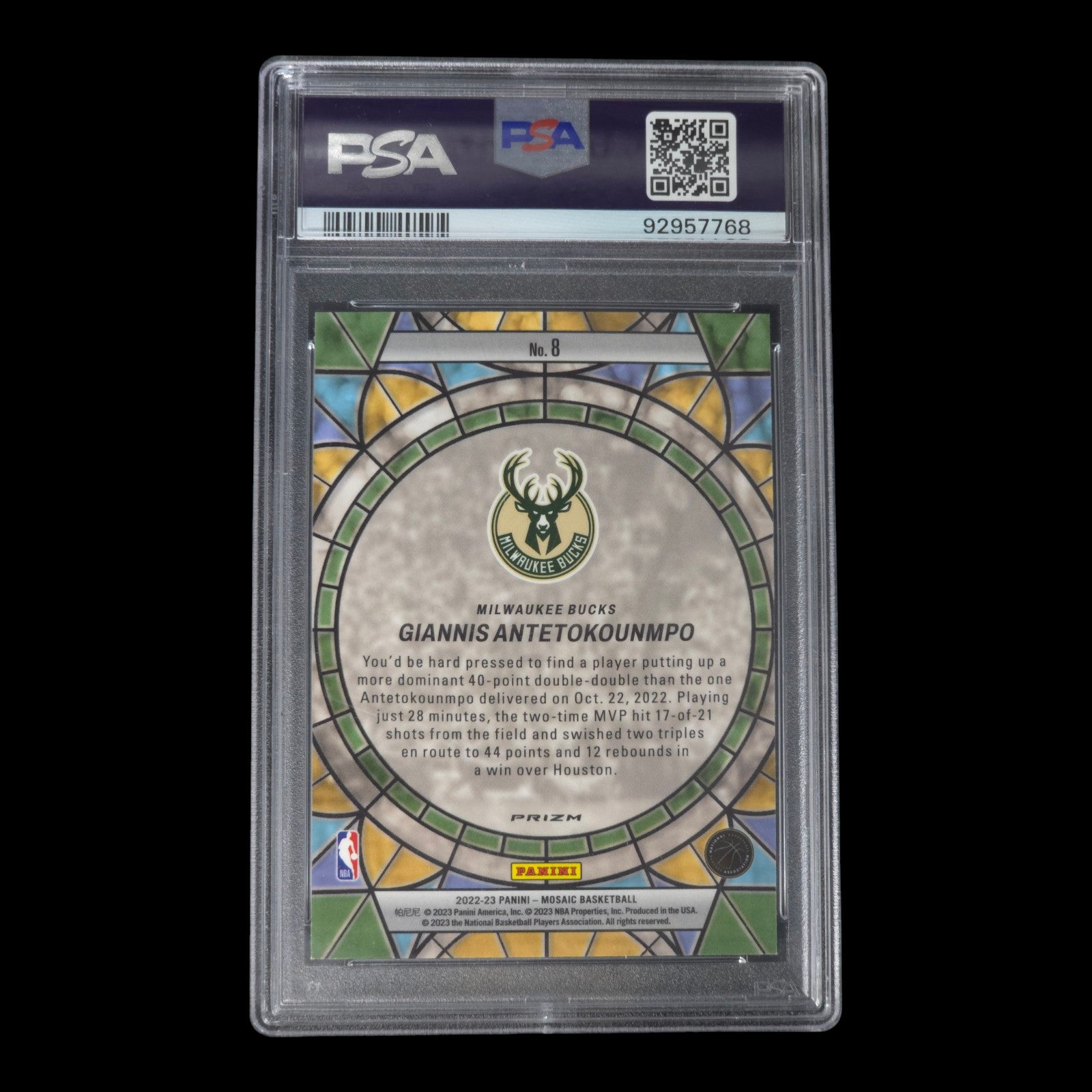 2022-23 GIANNIS ANTETOKOUNMPO Stained Glass Case Hit PSA 9 Mosaic Bucks #8