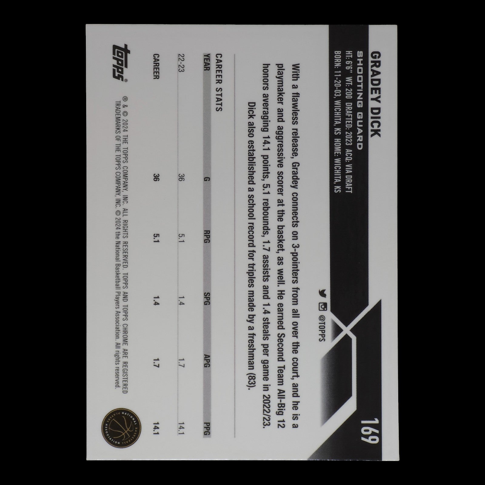 2023-24 GRADEY DICK Rookie Prizm Refractor Topps Chrome #169