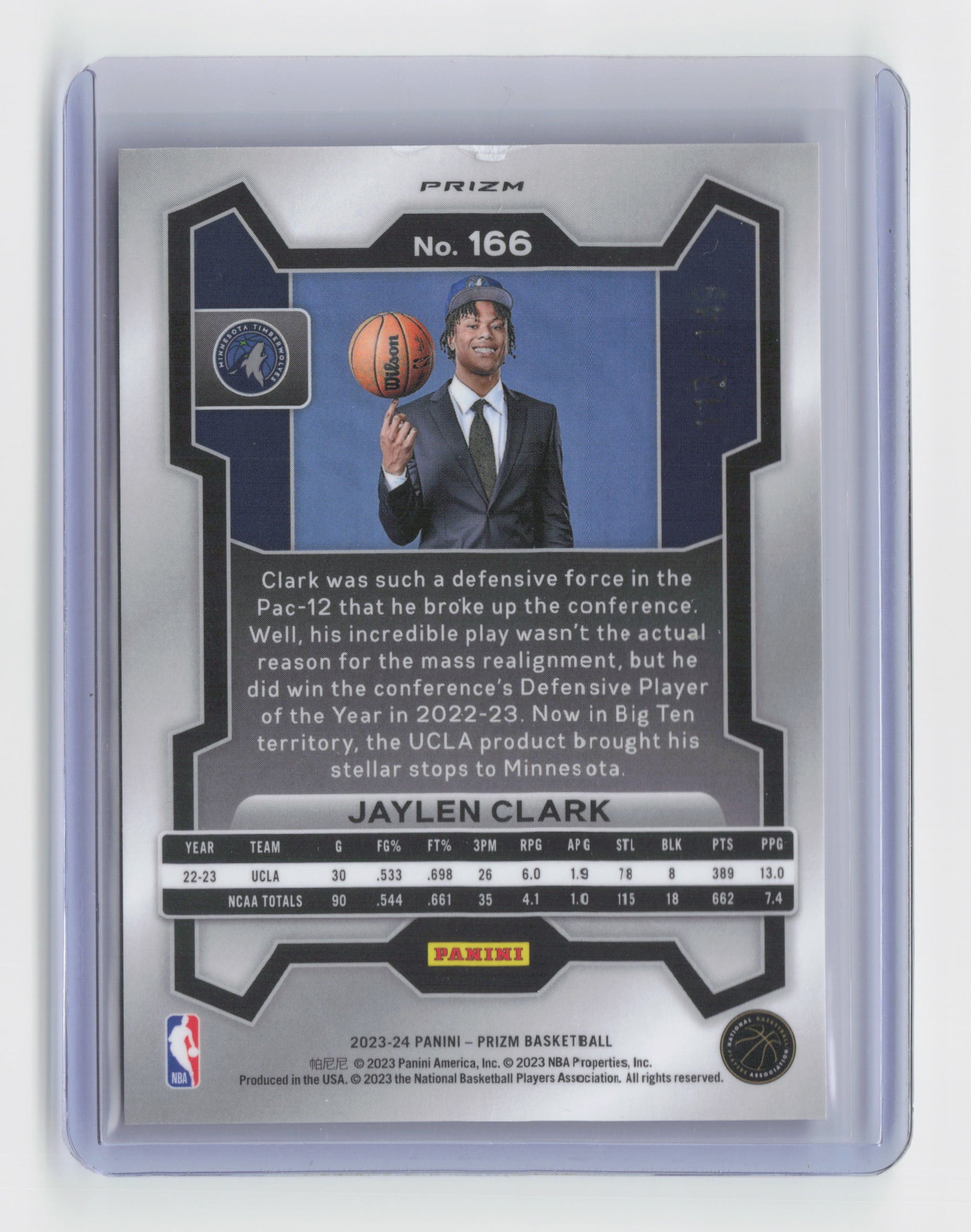 2023-24 JAYLEN CLARK Purple Cracked Ice Rookie 112/149 Prizm Timberwolves #166