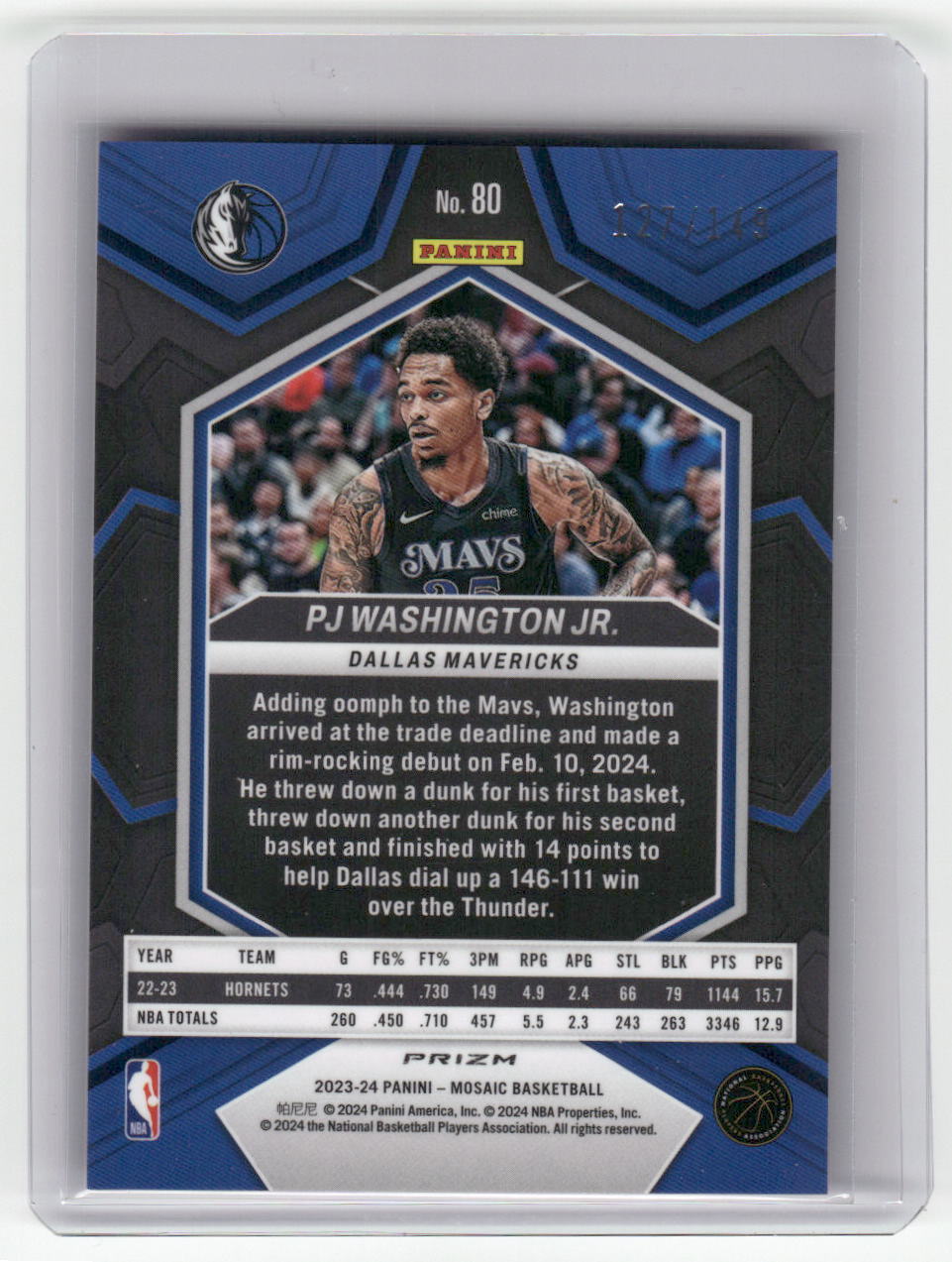 2023-24 PJ WASHINGTON JR. Pink 127/149 Mosaic Mavericks #80