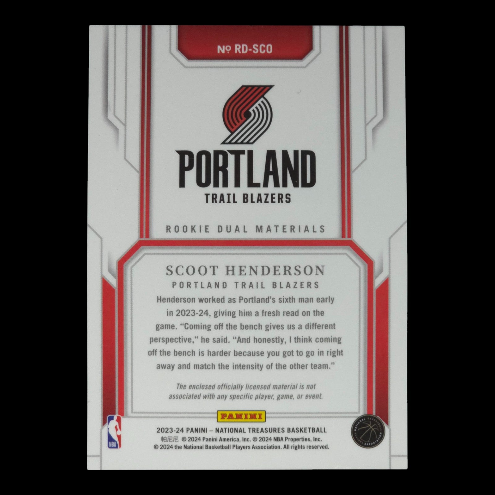 2023-24 SCOOT HENDERSON Rookie Dual Materials 7/99 National Treasures RD-SCO